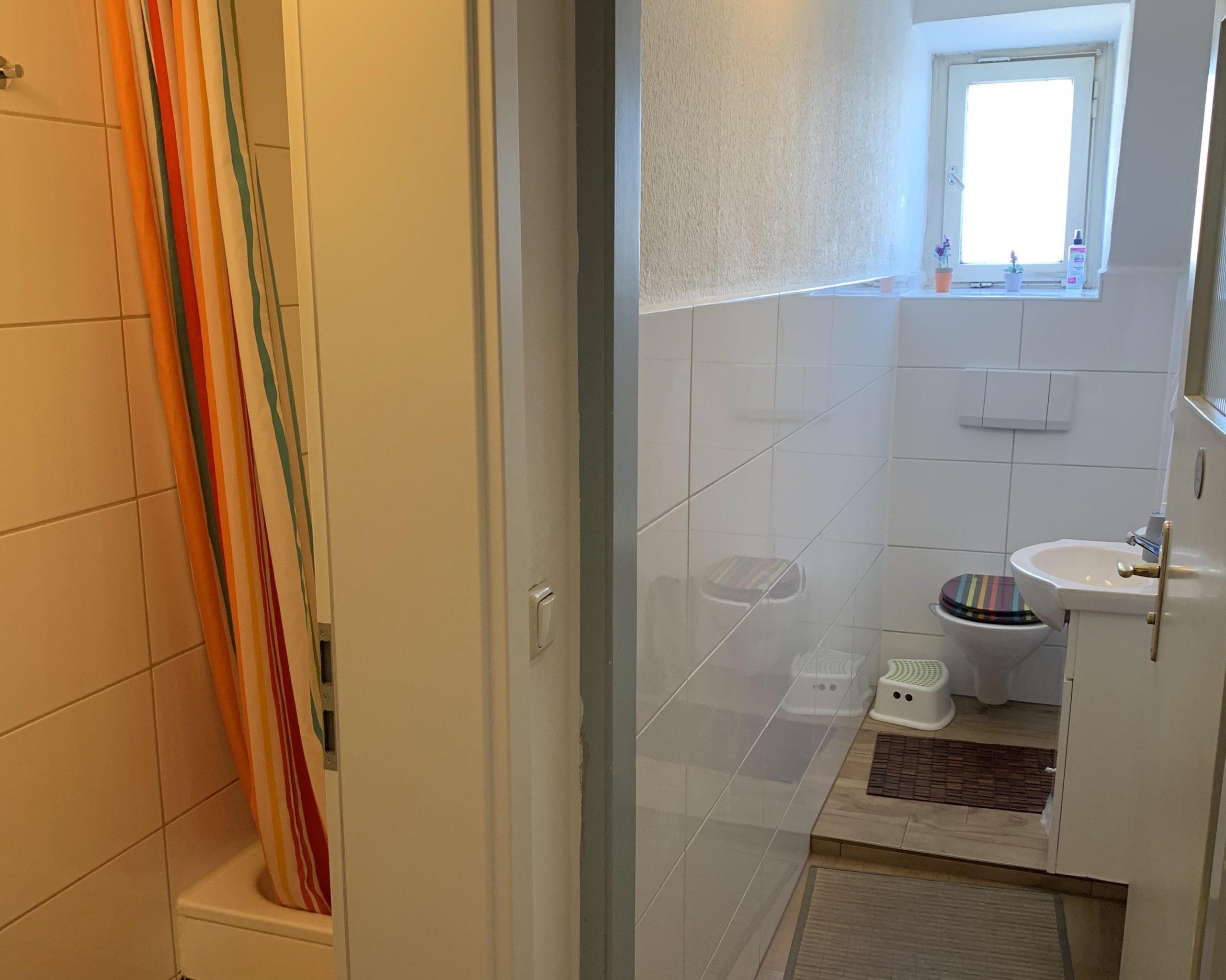 Schöne, helle Schlafzimmer in einer 5 Zimmer Suite mit einem Etagenbad und einer kleinen Küchenecke (bestehend aus Kühlschrank, Wasserkocher, Geschirr und Besteck). Die Zimmer können einzeln oder, auf Anfrage, zusammen für Gruppen von 5 bis 9 Personen gebucht werden.